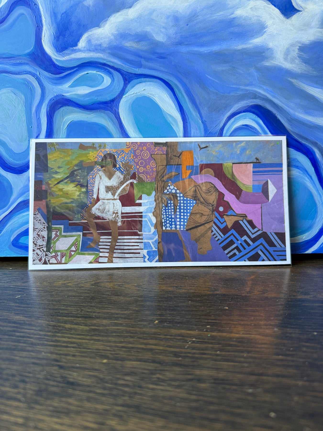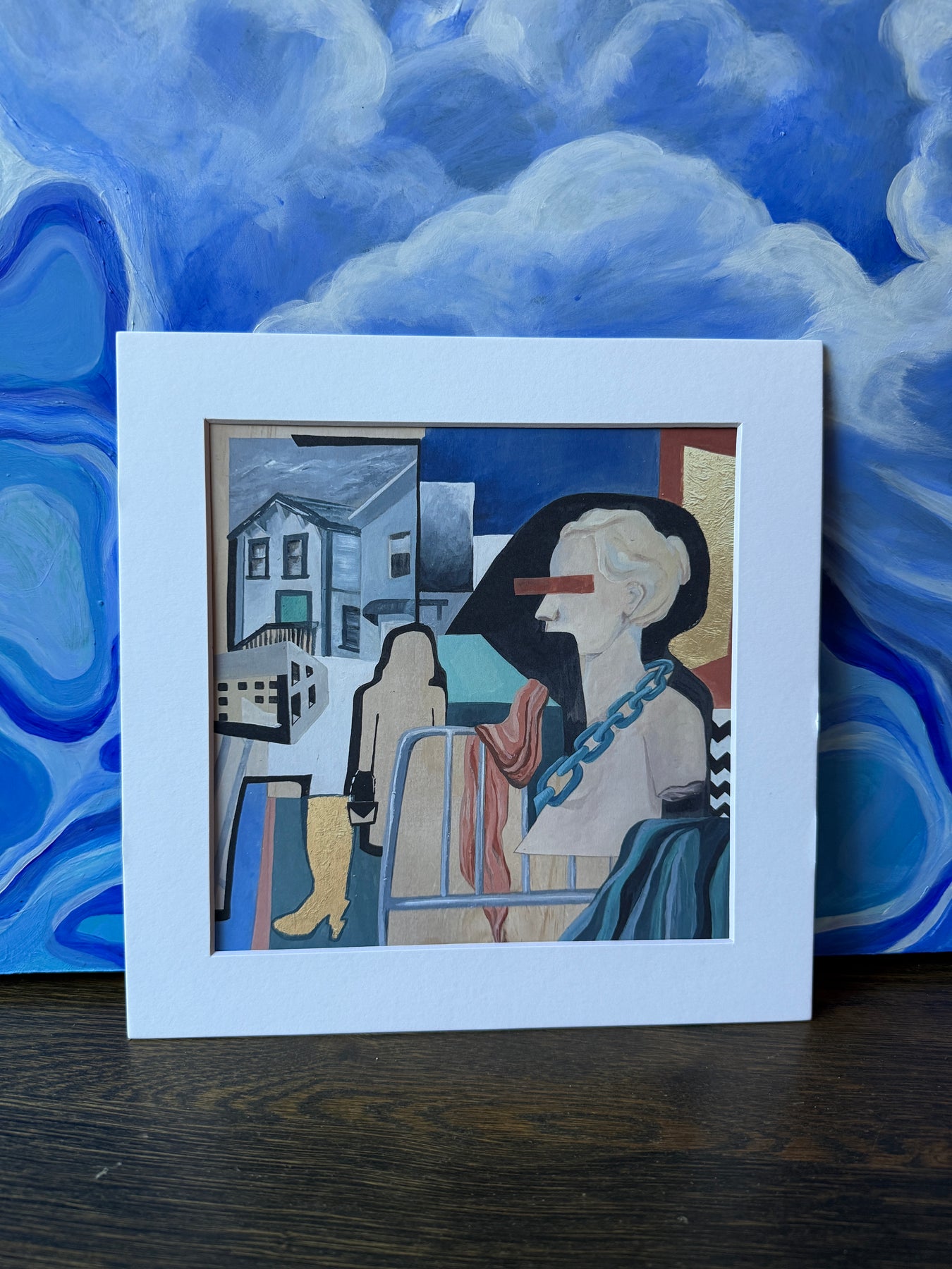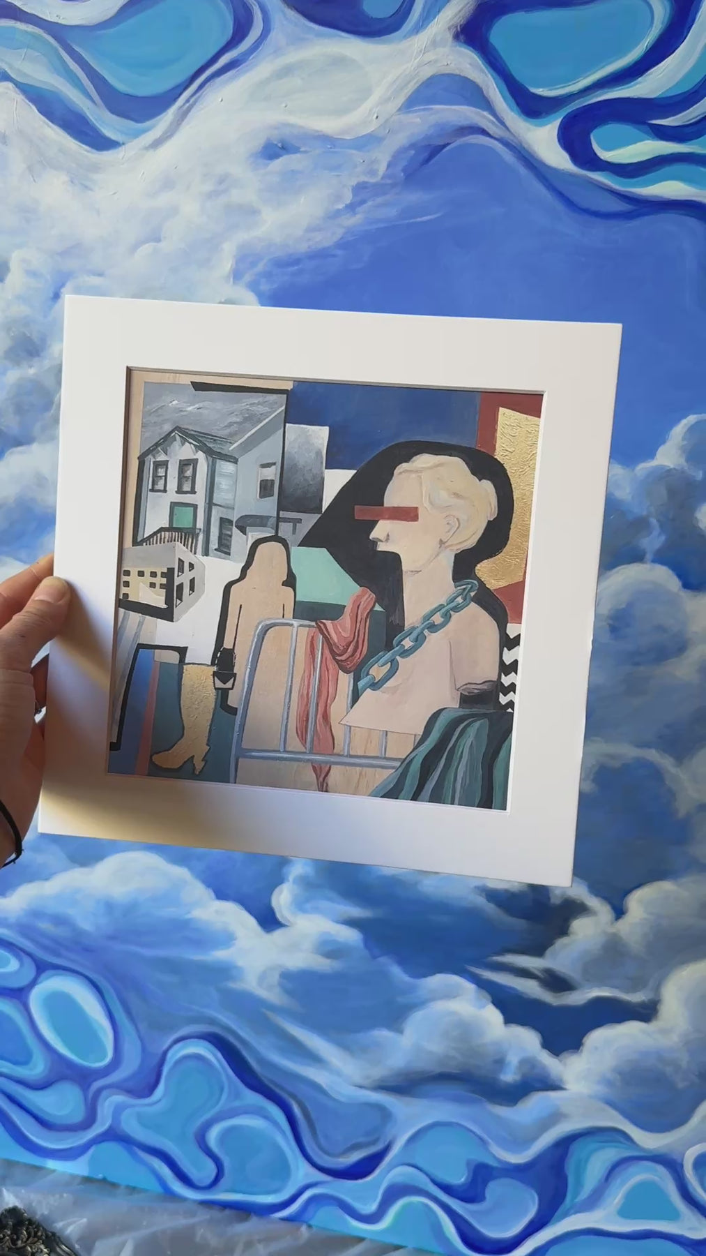 The original piece is a mixed media acrylic painting on wood, based on a paper collage. Made in 2022.