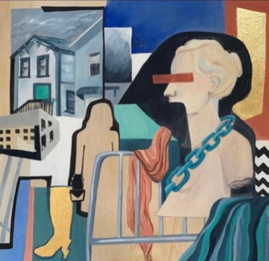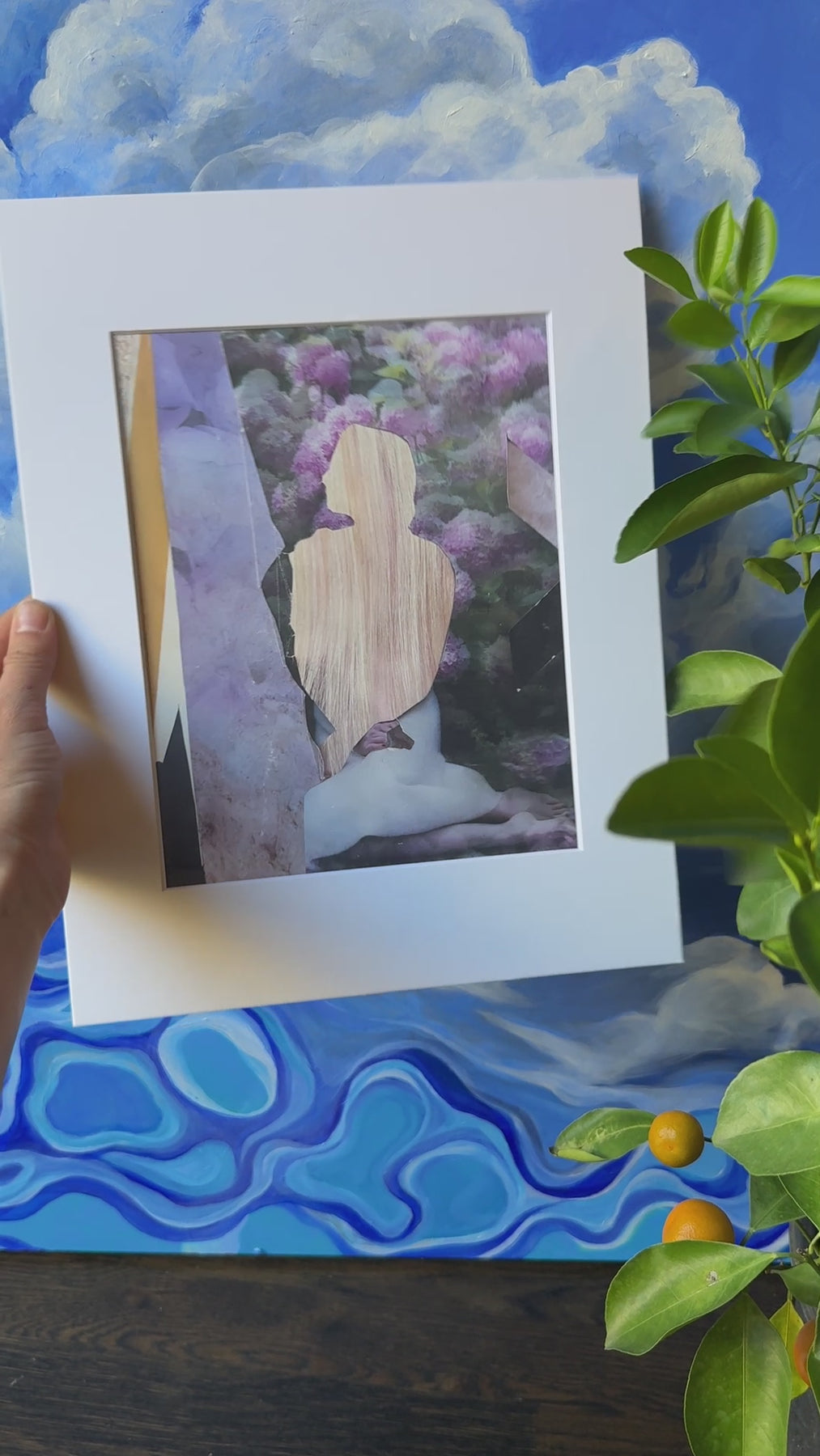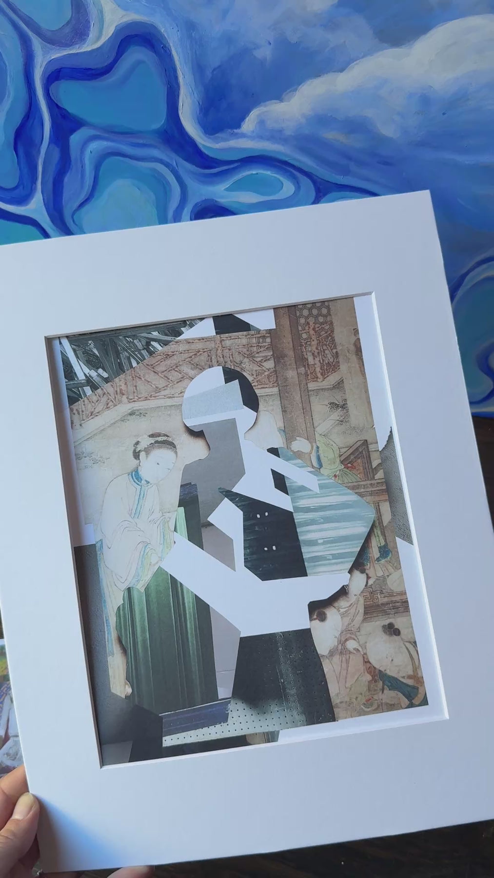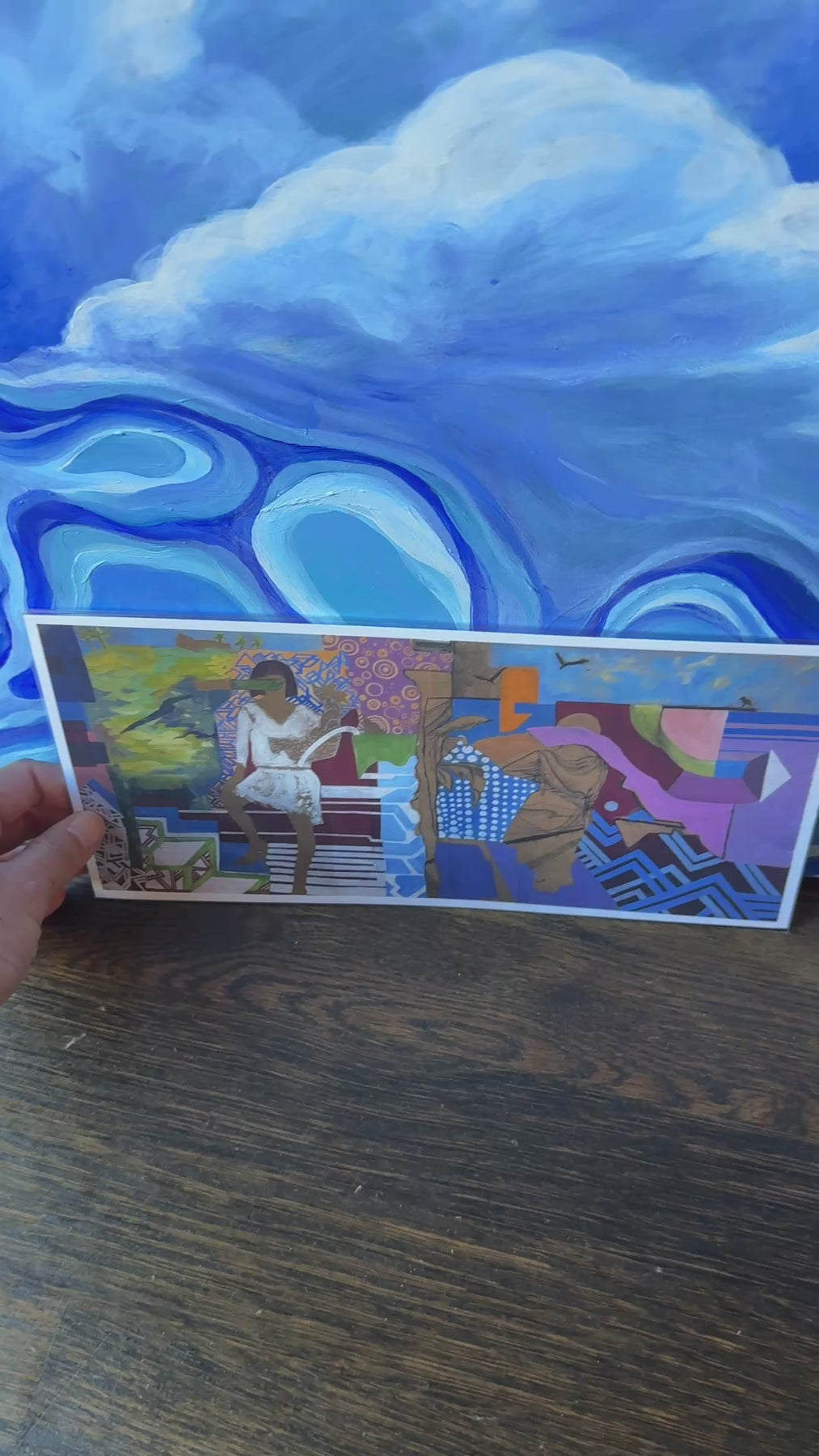 The original piece is a mixed media acrylic painting on wood, based on a paper collage. Made in 2022.