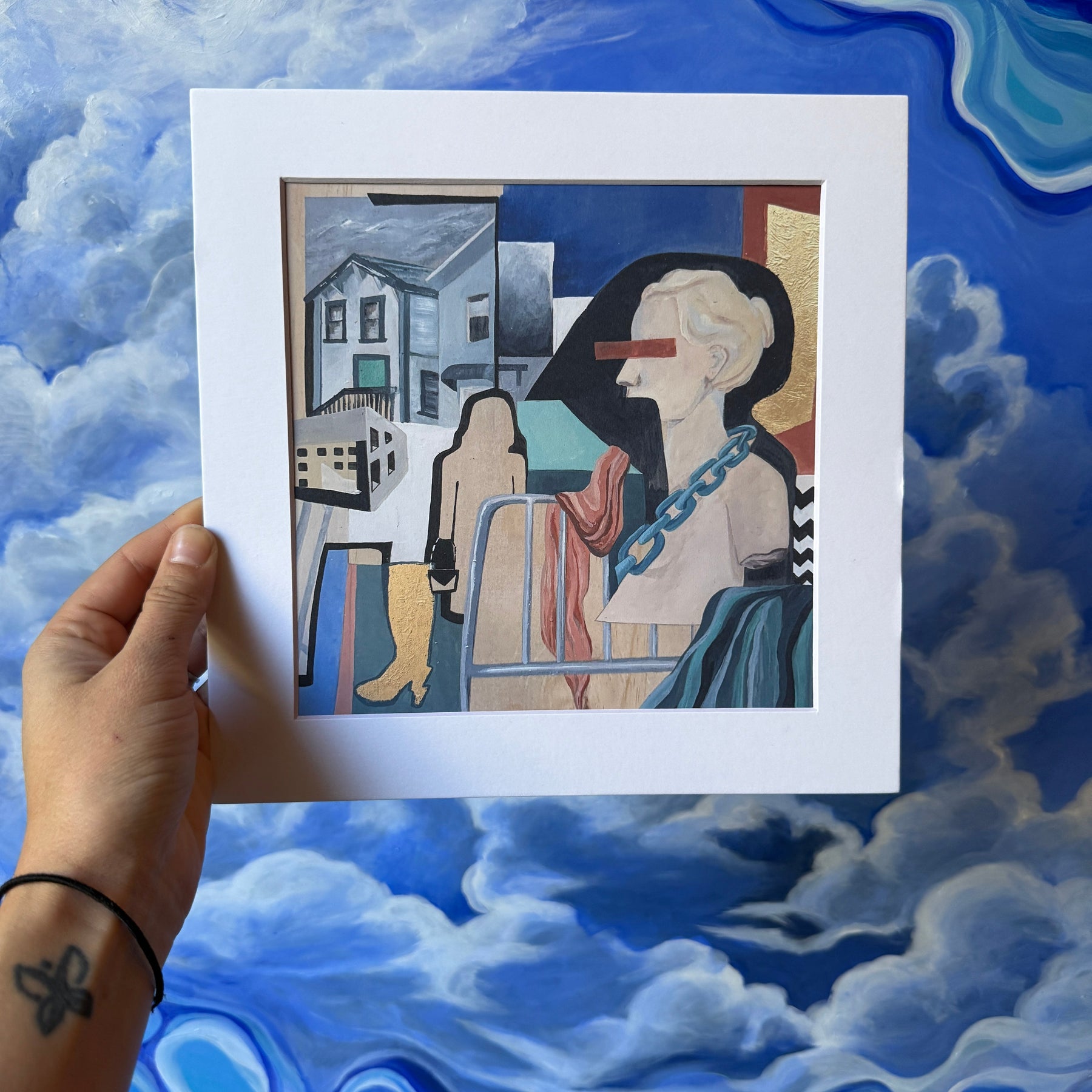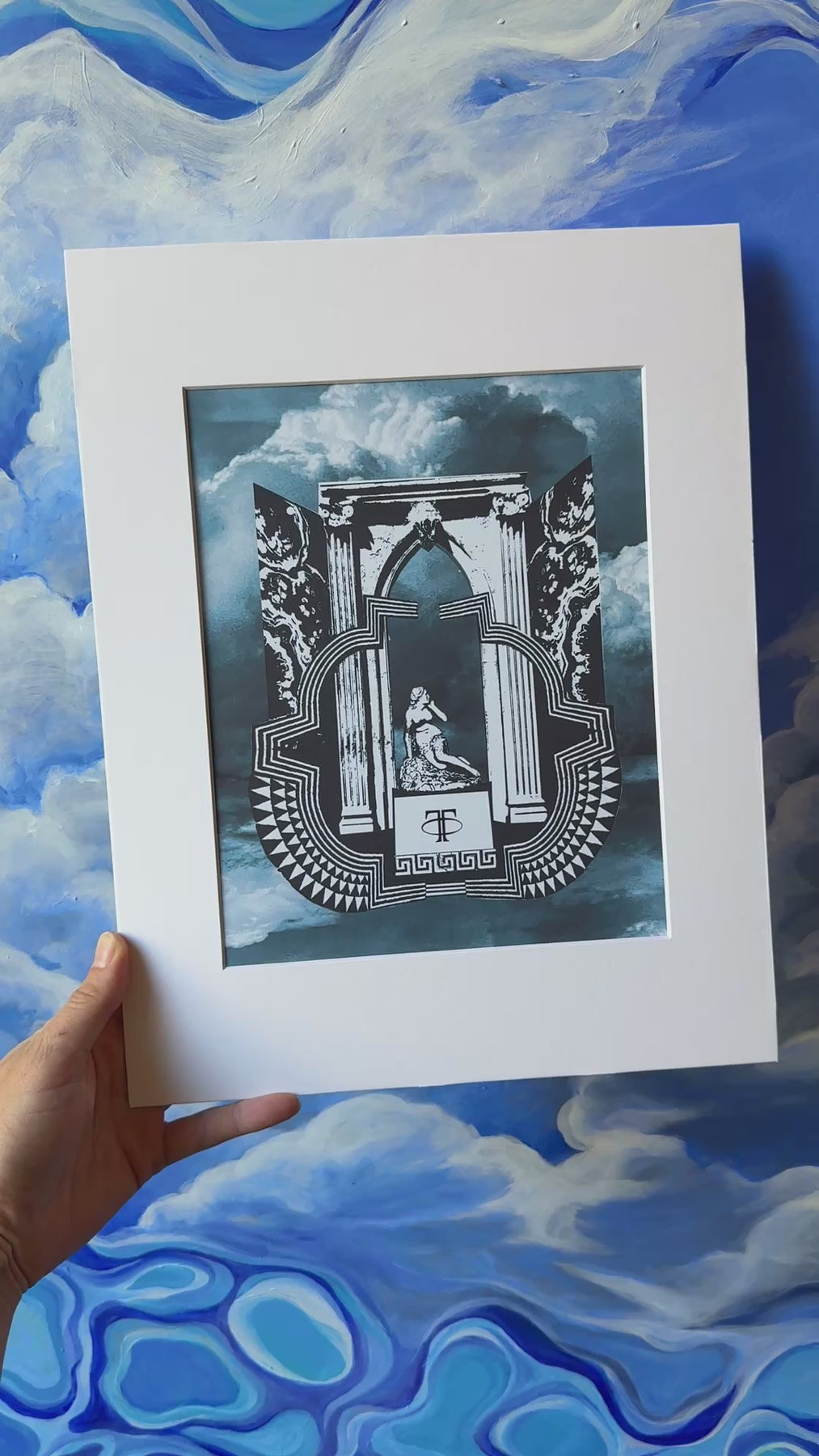 High quality inkjet digital print in a white matte, shipped in a plastic protective sleeve. Print itself measures 8x8”, matte measures 10”x10”.